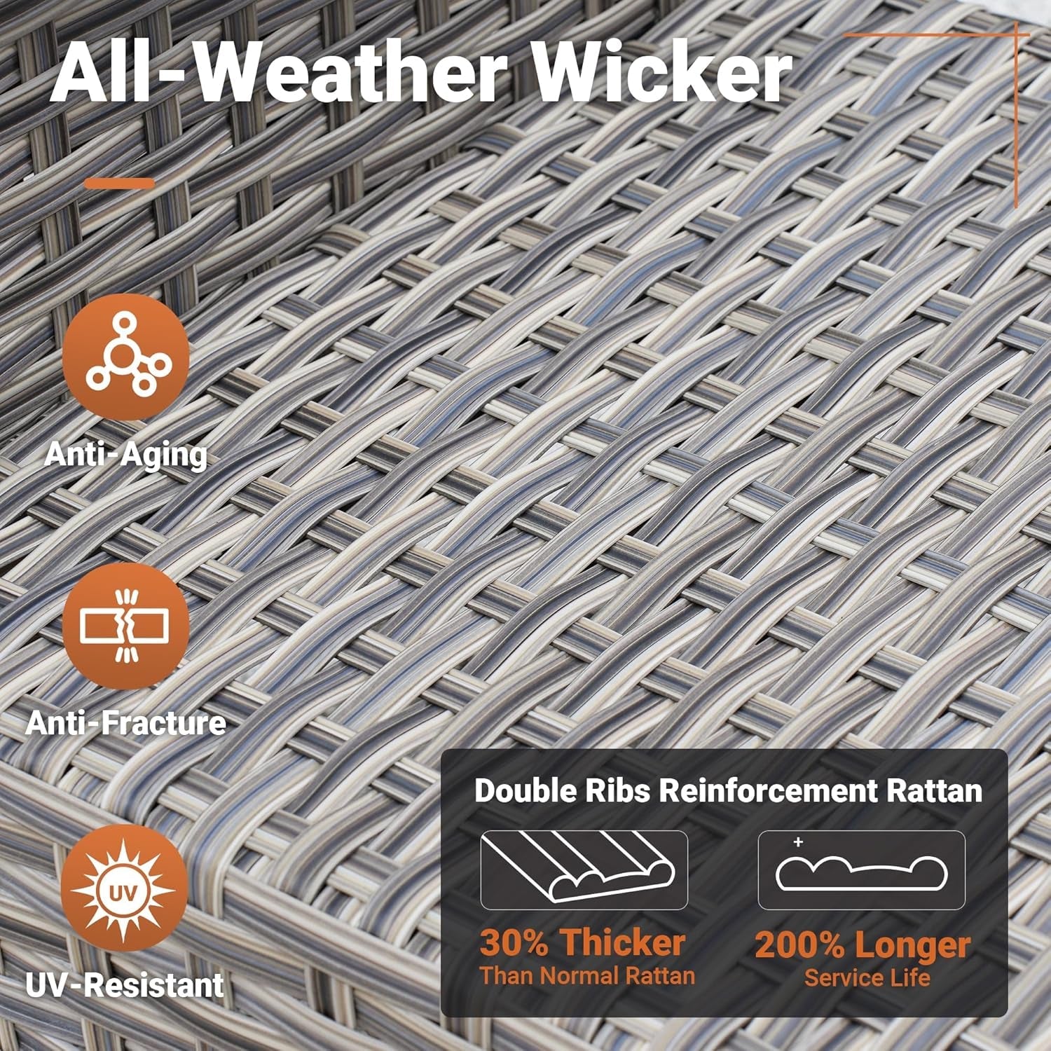 - Wicker-style outdoor furniture designed for patios and garden use