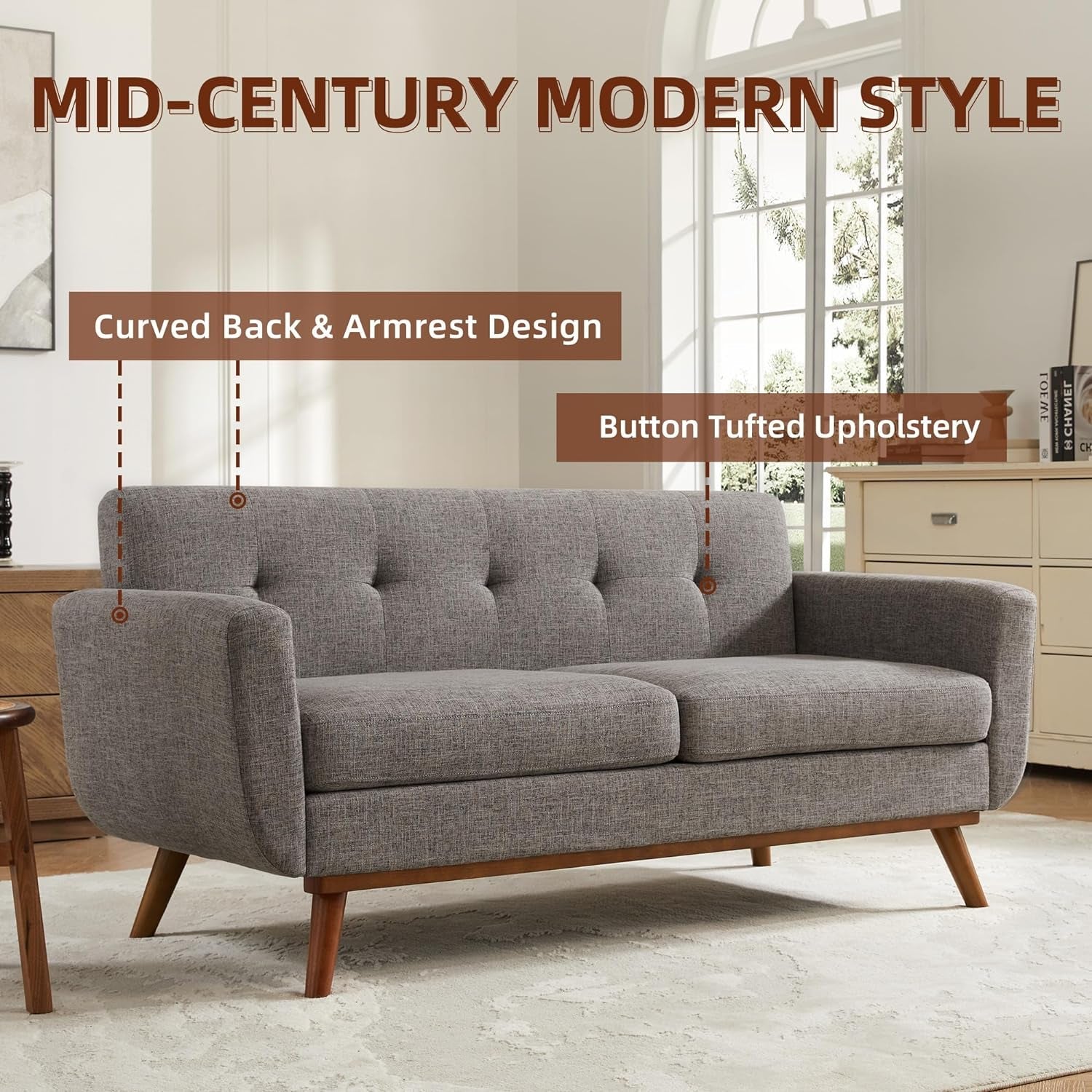 Grey Mid Century Modern Loveseat Sofa 65.3 Inch Living Room