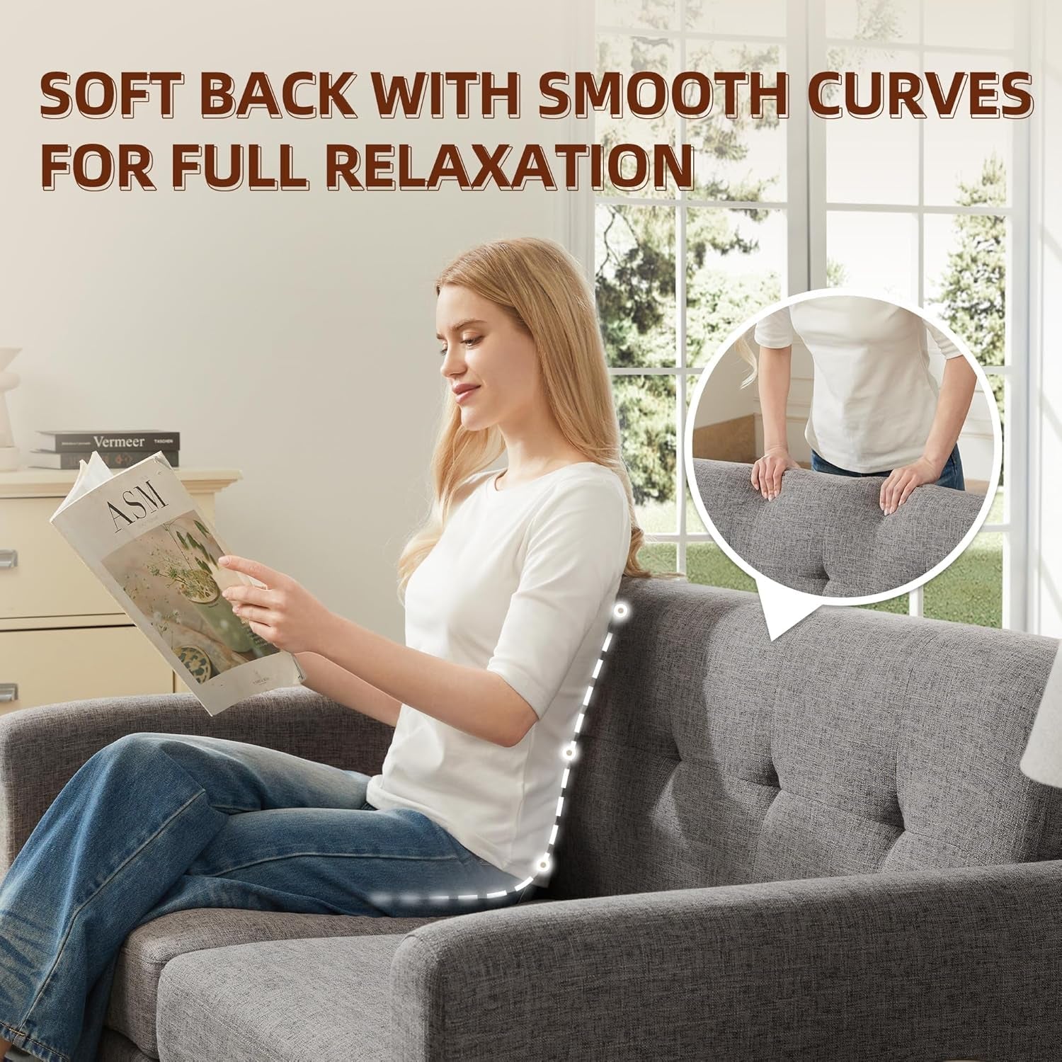 This Grey Mid Century Modern Loveseat Sofa is designed for living rooms, bedrooms, or apartments where space is tight but style matters. At 65.3 inches wide, it offers comfortable seating for two to three people without overwhelming your room. Unlike bulky sofas, its sleek mid-century silhouette and button-tufted design bring a timeless yet fresh look that fits effortlessly into modern and classic decor alike.